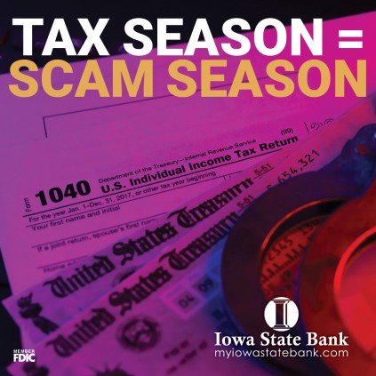 At Iowa State Bank, our team works behind the scenes every day monitoring unusual activity, flagging suspicious transactions, and helping customers protect their accounts. And during tax season, we tend to see a noticeable increase in certain types of scams.